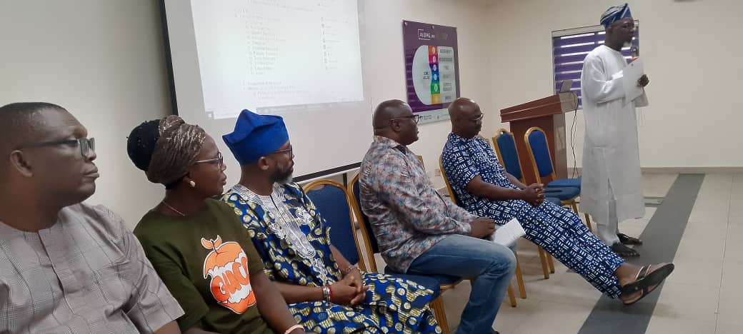 EXCO Members physically present at the meeting. L-R Barr. Akinyinka Kalejaiye, Mrs. Aderonke Olaniyan, Mr. Dayo Ogunmowo, Mr. Ogunnaike Ogundeko, Prof Khalid Adekoya, Mr Olabade Badejo,
