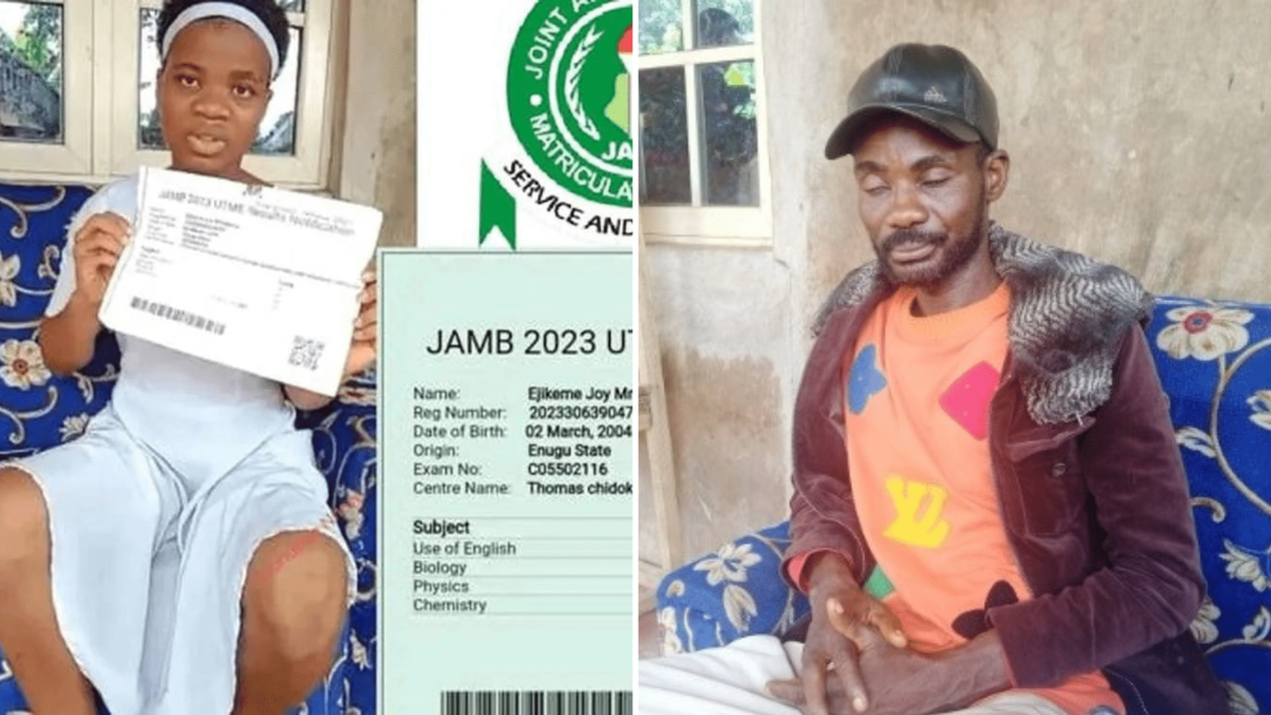 Mr. Romanus Ejikeme, the father of Joy Mmesoma Ejikeme, has come out in strong defence of her daughter who was accused of forging her Unified Matriculation Tertiary Examination score.