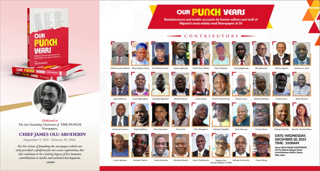 A book on the experiences of 38 former staff of The Punch Newspaper while working in the company is billed for launch in Lagos on Wednesday, December 20, 2023.