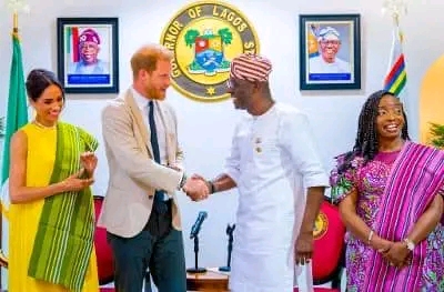Lagos State Governor, Mr. Babajide Sanwo-Olu, received the Duke and Duchess of Sussex, Prince Harry and Meghan Markle, on Sunday.